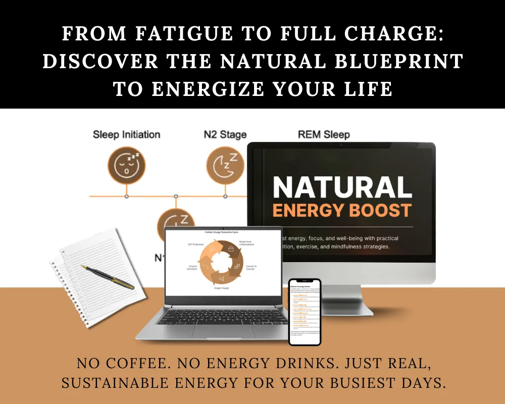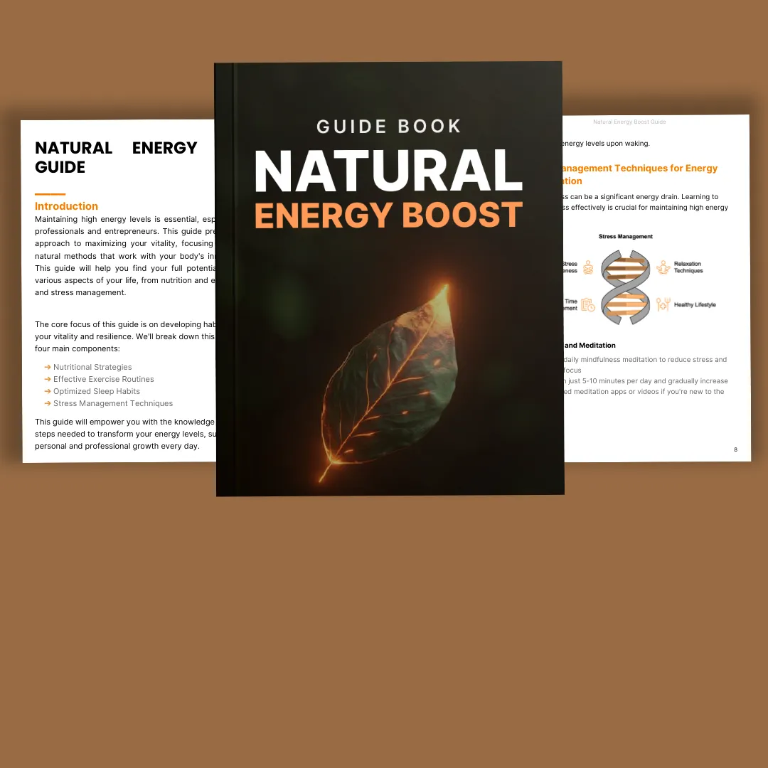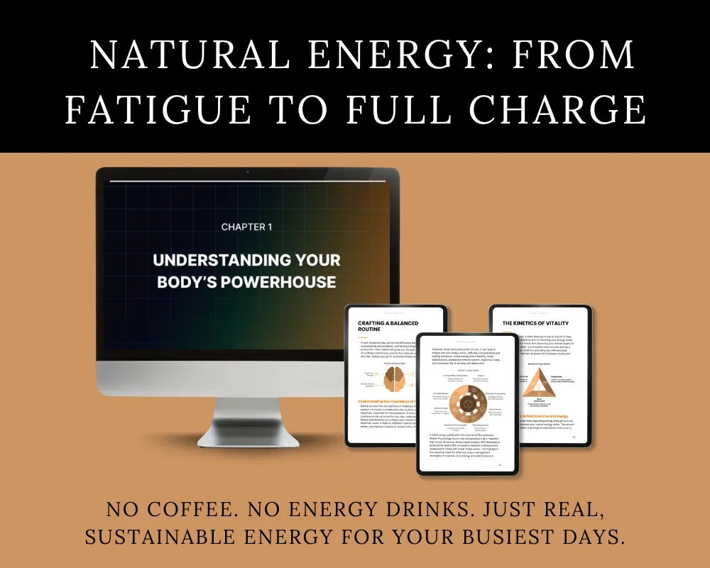 This guide, Natural Energy: From Fatigue to Full Charge, is your comprehensive roadmap to unlocking sustainable, all-day energy without relying on caffeine, energy drinks, or gimmicks. Here’s what you’ll discover: The Foundations of Energy How your body naturally produces energy and why certain habits might be sabotaging your vitality. The role of key nutrients, hormones, and lifestyle choices in maintaining consistent energy levels. Practical, Science-Backed Strategies Proven methods to improve sleep quality so you wake up refreshed and ready to take on the day. Easy, actionable ways to manage stress and avoid the energy drain it causes. The best foods and meal strategies to balance blood sugar and sustain energy throughout the day. Quick Wins and Long-Term Solutions Energy-boosting hacks you can implement immediately, like 10-minute exercises or simple hydration strategies. Long-term lifestyle adjustments that create lasting improvements in your energy levels and overall well-being. Personalized Tools and Routines How to design a morning routine that sets the tone for a productive, energetic day. Techniques to optimize your workday and avoid the dreaded midday slump. Step-by-step guidance to create a balanced evening routine that preps your body for restorative sleep. Safe and Natural Enhancements An exploration of natural supplements and adaptogens that can support your energy production safely. Expert insights on how to choose the right supplements for your needs (if you choose to use them).